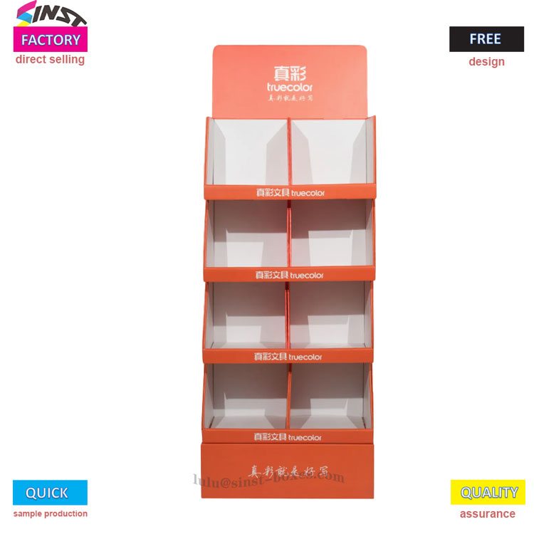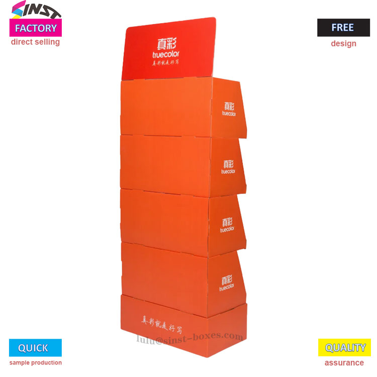 Paper korrugatu gorri laranja bizidun hau ikusmen-erakarpen eta marka efektuko artefaktua da. Alboko eta beheko kutxaren gorputzaren geruza bakoitza behin eta berriz markako logotipoarekin grabatuta dago, bezeroaren memorian sakonduz. Paperezko eskuoihal korrugatudun kutxaren erakusleihoa paper korrugatu lodiz egina dago, konpresio erresistentzia handia duena, eta oso sendoa da hainbat elementu pilatzen direnean. Geruza anitzeko pilatutako egitura konpartimentu independenteekin, ezin hobeto egokia da ehun-erroiluak, paperezko elementuak eta sarbide erraza trabatu gabe; Supermerkatuetako kontsumo-ondasunen ataletik erosotasun-dendetako kutxako leihatilaraino, kontsumitzaileen arreta erakartzen du kontraste handiko koloreekin, "erakusleihoa" "salmenta sustatzaile" bihurtuz, produktuen esposizioa erraz handitzen lagunduko dizu.