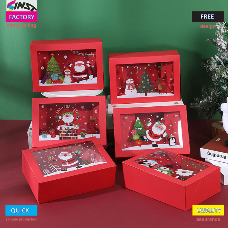 Gabonetako gozoki-kutxa honek hondo gorri epela, kutxa angeluzuzeneko gorputza eta leiho gardena ditu, neguko maitagarrien ipuin bat ikusteko leiho bat bezala. Paper gogorrez egindako Gabonetako gozoki kutxa hau, barruan gozokiak erakutsi ditzake eta nolabaiteko egonkortasuna du. Eguneroko gauzetara egokitu daiteke, hala nola txokolatea, postreak, galletak, gominolak, etab; Goxokien edukiontzi polita ez ezik, mahaigaineko Gabonetako dekorazioa ere bada. Jendeari erabilera pertsonalerako emateak oporretako giroa alai dezake, gozotasun guztiak zeremonia batean bilduta.