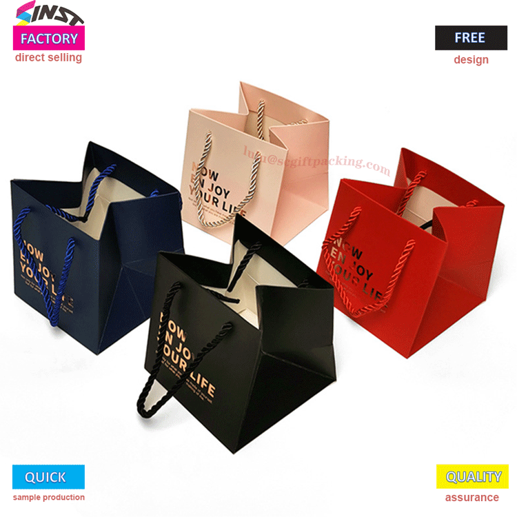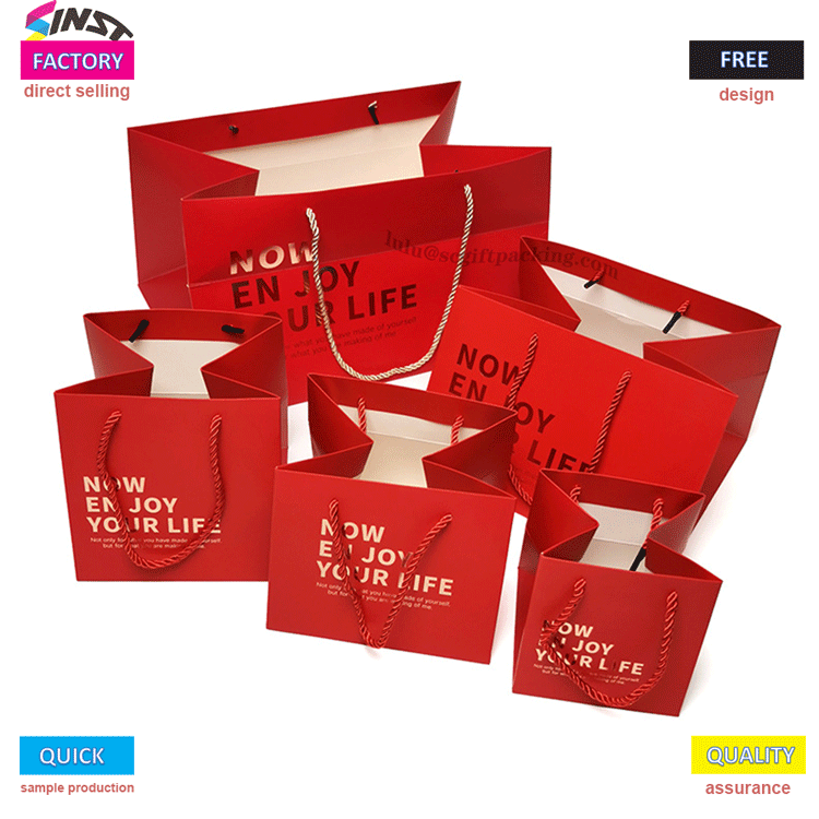 SINST-en Arropa eta kosmetika beroa estanpatzeko opari-poltsak heldulekuen diseinu pentsakorra du, tiratzeko erraza, sendoa eta karga-gaitasun ona duena. Berrerabili daiteke eta oparien ontzietarako lehen aukera da; Hainbat alditan erabil daiteke, hala nola bitxi-dendak, arropa-dendak, kosmetika-dendak, oinetako-dendak, etab;