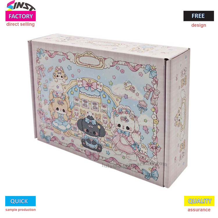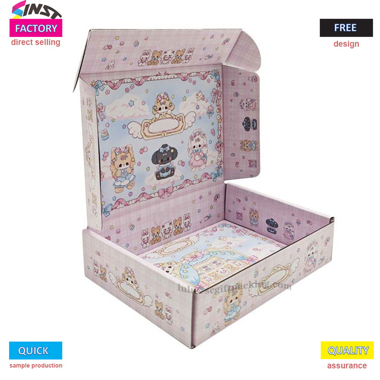 Estilo gozoa eta polita eskaintzen duen arroparako paperezko hegazkin koloreko kutxa koloretsua da. Materiala kartoiz korrugatua da eta kolorearen eskema orokorrean arrosa da batez ere, arropa estilo leun eta politekin lotzeko egokia da. Ireki ondoren, asmamena ere ezagutu dezakezu - kutxaren barruan dagoen substratua marrazki bizidunen patroiez ere beteta dago, txakur txikiak, katuak eserita edo etzanda, hodeiak eta bihotzak bezalako elementu leunez inguratuta. Barruan eta kanpoan eredu estiloa bateratu gabea da, sinplea baina atsegina.