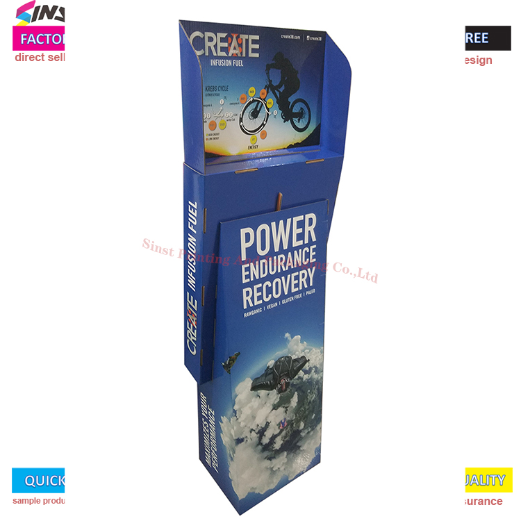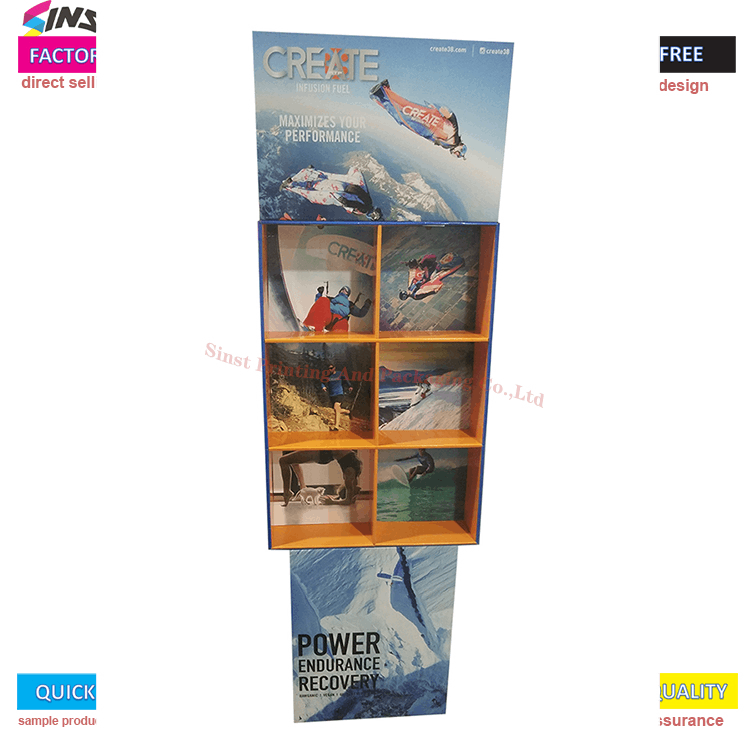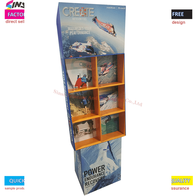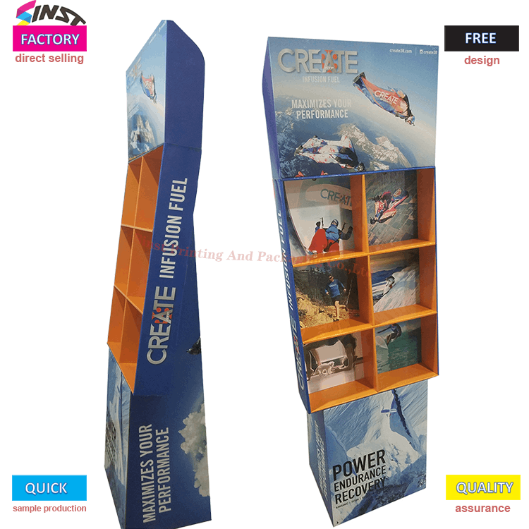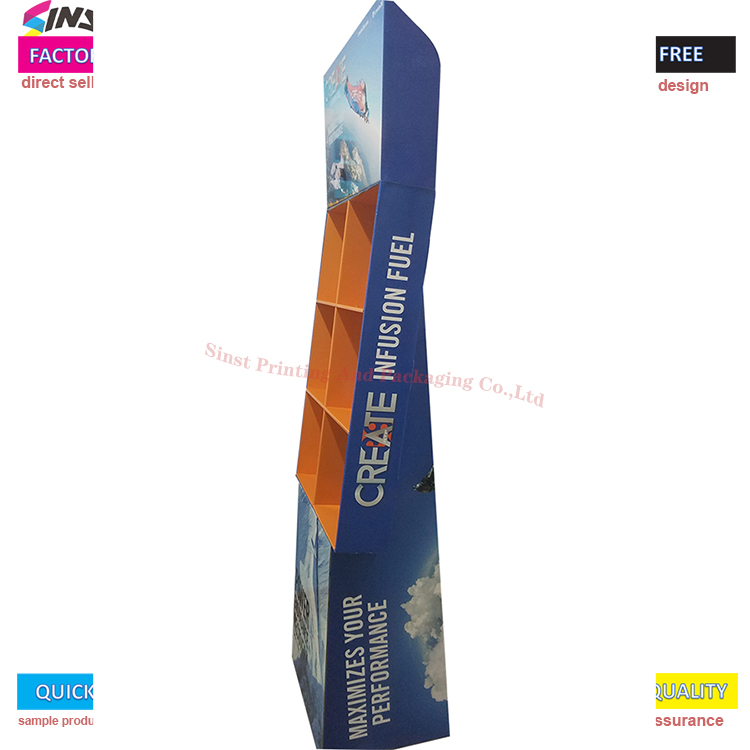 Energia-hautsaren kartoizko konpartimentuko solairuko euskarriak sarearen diseinu kontzeptua hartzen du, definizio handiko inprimaketa eta kolore ederrak arreta erakartzeko; Sinst-ek erresistentzia handiko kartoi korrugatua erabiltzen du, ingurumena guztiz errespetatzen duena eta birziklatu daitekeena; Marrazkira etortzen zaren bitartean, lagina pertsonalizatu dezakegu, eta industriako material eta prozesu mota guztiak pertsonalizatu eta ekoiztu daitezke;