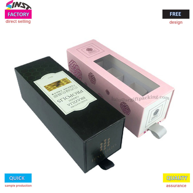 Oilasko lixiba zurrumurru zurrunbiloaren paketatzeak bi koloreko opari kutxa gisa diseinatuta, kolore arrosa eta beltzak talka egiten du. Barruko forruak banatzaile zuria eta tira fitxa diseinua ditu, tira leuna lortzeko erraz erauzketa erraza ahalbidetuz. Bitxiak, edertasun laginak edo 30ml propolis botilak gordetzeko bost konpartimentu desberdin daude eskuragarri, ingurune libre garbia eta kezkak bermatuz. Iltze poloniar opari kutxa gisa erabil daiteke, ezpainetako opari kutxa, lagin opari kutxa, etab;
