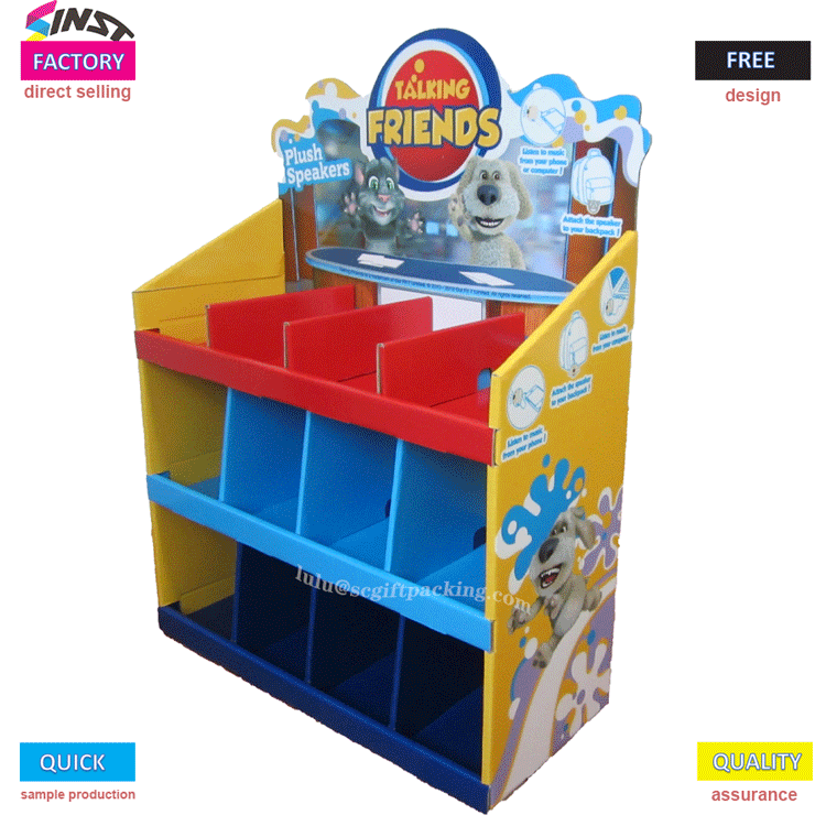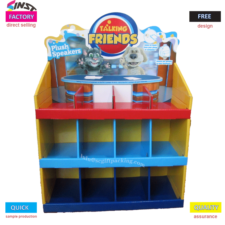 Gaur egun, mahaigaineko jostailu erakusmahaia partekatuko dugu haurrentzako jostailuen merkatuan bereziki diseinatuta.Pantaila hau standMarrazki bizidunetako pertsonaia klasikoak bere gai gisa ditu, kolore gorri, horia eta urdinak konbinazio bizia eta erakargarria, haurren eta gurasoen arreta zuzenean erakartzeko. Hizlariak, zintzilikarioak edo elementu txiki periferikoak jartzen dituen ala ez, apalak berehala bizi ditzakete.