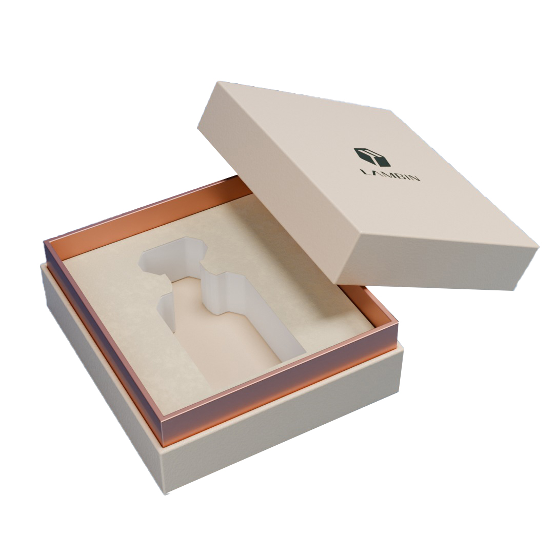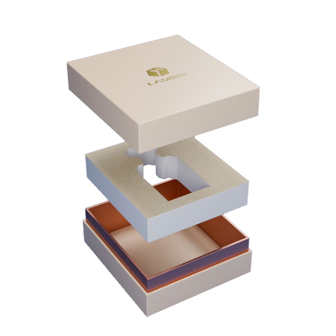 Lehertu den ikuspegian, opari kutxa honen diseinuaren logika oso argia da: goiko estalkia eta barruko estalkia oratu eta muntatuz egindako opari kutxa da, eta beheko estalkia eta barruko estalkia elkarrekin. Goiko geruza beige kaxa estalkia da, gainazalean grabatutako urrezko markaren logotipoarekin, ukitu delikatua eta ez ukitua eskainiz; Erdiko geruza da gakoa - forru hutsaren forma perfume botila arruntaren behealdean egokitzen da, botilarentzako egokitutako "erretilu txiki" bat bezala. Kutxa maletan sartu bada ere, lurrina botila ez da kutxan jaurti eta talka egingo; Itxurak enkargatutako opari kutxa baten estiloa hartzen du, gainazalean estalitako paper bereziarekin eta markoan kartoizko kartoizko arrosa bereziarekin. Hornigaia Eva Flannel oihal zuriz egina dago. Deskonprimitzetik bistaratzera, angelu guztiek luxuzko ehundura sortzen dute.